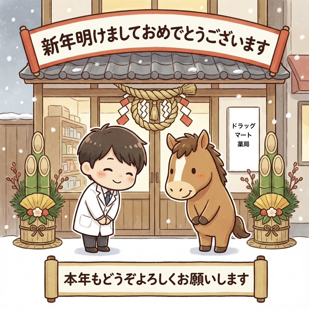 地域の皆様にとって健康のこと、お薬のこと、「なんでも相談できる薬局」として、 皆様の日常生活の質が上がり、毎日が”馬”くいくように健康サポートをしていきたいと思います🐴